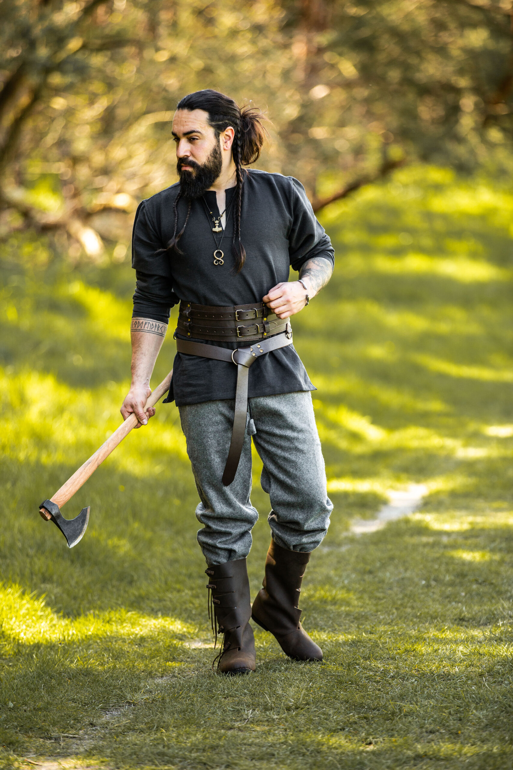 De Arion Ring Belt is perfect voor wie op zoek is naar zowel vorm als functie in zijn kleding. De robuuste constructie zorgt ervoor dat hij elke reis kan doorstaan, terwijl het tijdloze ontwerp hem geschikt maakt voor verschillende gelegenheden, of het nu gaat om re-enactments of thema-evenementen. Terwijl je de leren riem door de metalen ring vastmaakt, voel je gesterkt door zijn historische wortels en zelfverzekerd door zijn moderne vakmanschap.