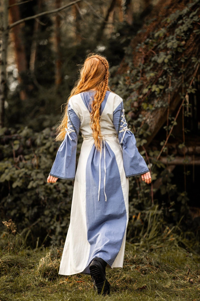 Onze middeleeuwse jurk is geïnspireerd op de tijdloze elegantie van historische kledingstukken die door adellijke vrouwen in de middeleeuwen werden gedragen. Hoewel de jurk is gebaseerd op deze rijke tradities, is hij ontworpen voor moderne dragers die hun innerlijke koningin of jonkvrouw willen laten zien tijdens evenementen zoals LARP-bijeenkomsten of themabruiloften. De decoratieve versiering rond de halslijn en mouwen zegt veel over een tijdperk waarin elk detail belangrijk was, en nodigt je uit om de schoonheid van de geschiedenis te ontdekken door middel van mode.