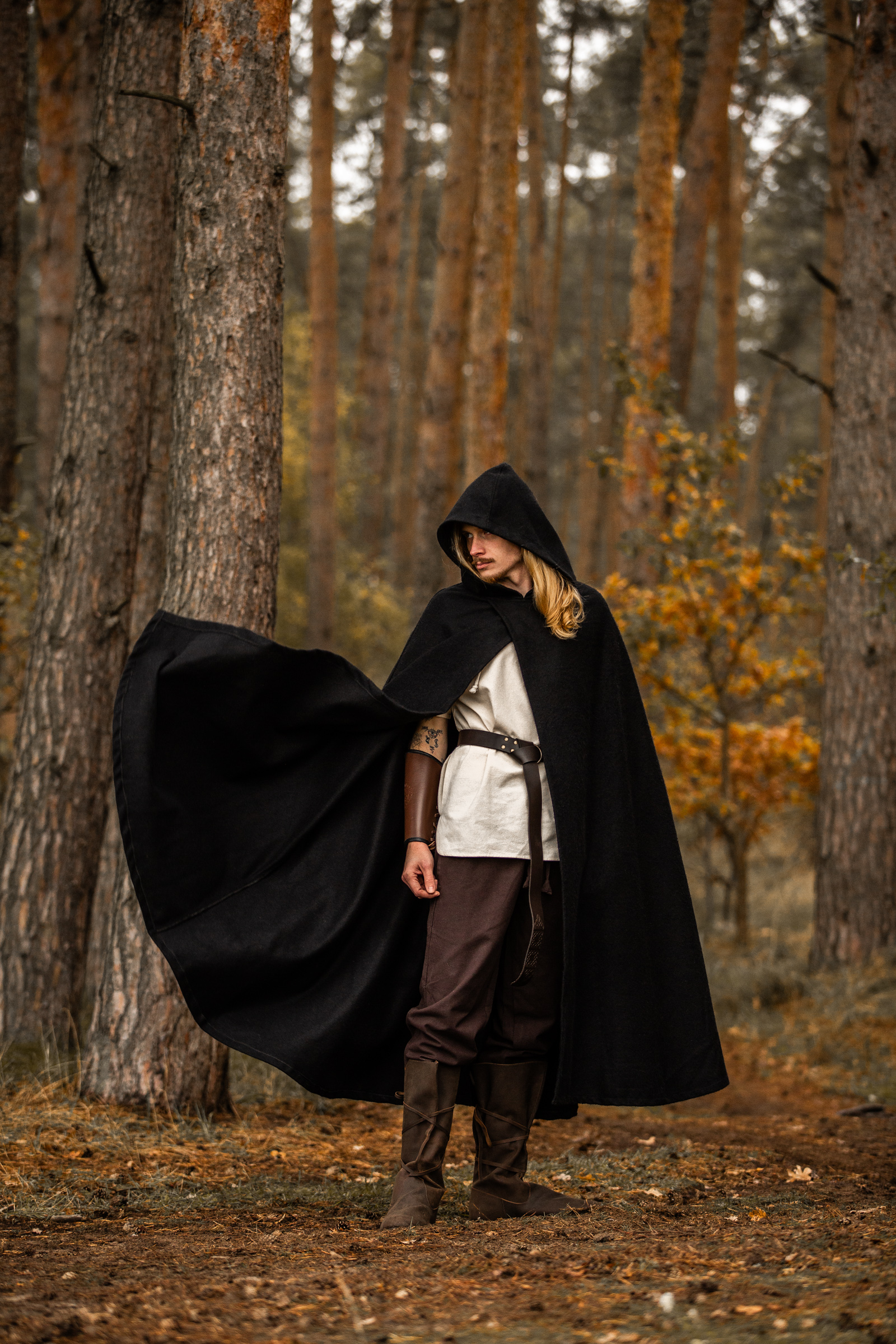 Onze mantel is geïnspireerd op de middeleeuwen, toen mantels een essentieel kledingstuk waren voor zowel mannen als vrouwen. Naast hun functionele eigenschappen van warmte en bescherming tegen de elementen, dienden mantels als een symbool van status en identiteit. De eenvoud van de Thorian-mantel weerspiegelt een tijdloze elegantie die in middeleeuwse garderobes zeer gewaardeerd werd. Of ze nu door reizigers of edelen werden gedragen, dergelijke mantels straalden een gevoel van avontuur en intriges uit.