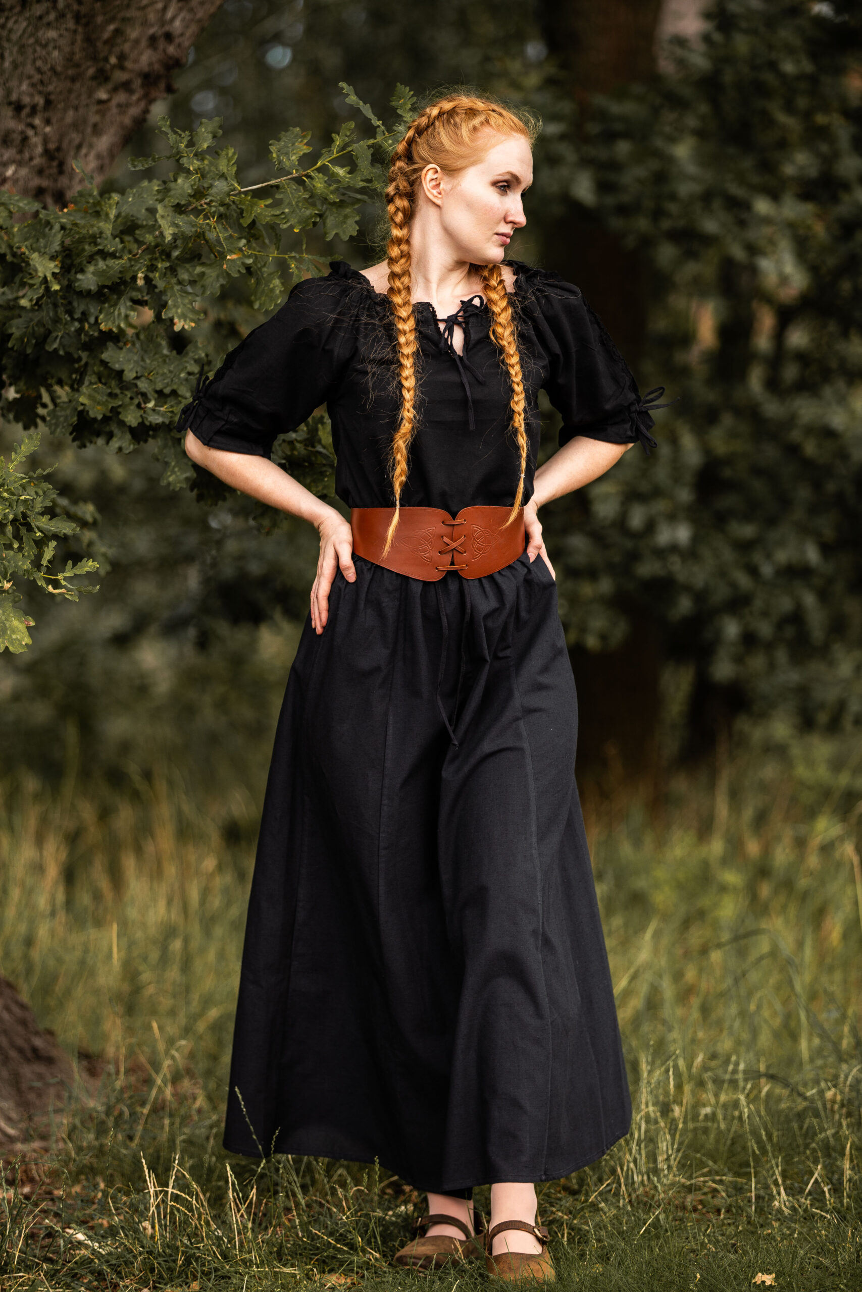 Onze middeleeuwse rok Dana is geïnspireerd op de rijke verscheidenheid aan stijlen die de middeleeuwen kenmerkten. Tijdens deze fascinerende periode waren rokken essentiële kledingstukken die door vrouwen uit verschillende sociale klassen werden gedragen. De eenvoud en functionaliteit van het ontwerp weerspiegelen de modegevoeligheid van die tijd en bieden tegelijkertijd bewegingsvrijheid voor dagelijkse activiteiten of speciale gelegenheden. Door voor onze rok te kiezen, omarm je eeuwen van geschiedenis en traditie die in elke plooi zijn verweven.