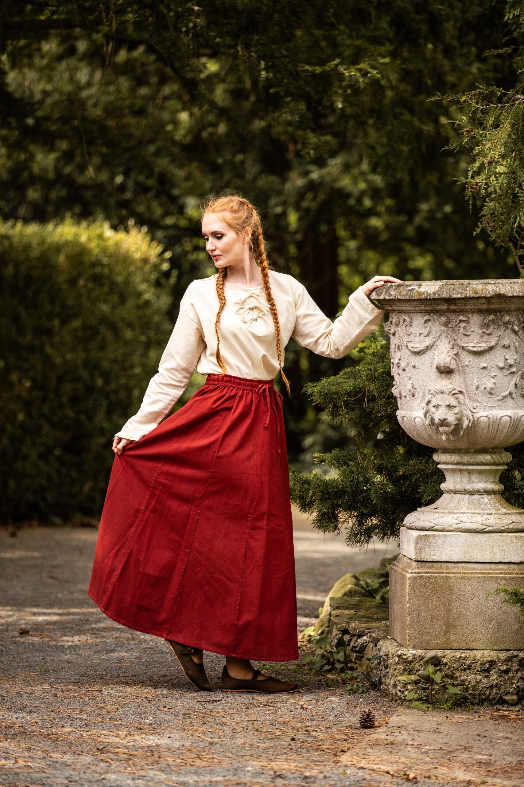 Onze middeleeuwse rok Dana is geïnspireerd op de rijke verscheidenheid aan stijlen die de middeleeuwen kenmerkten. Tijdens deze fascinerende periode waren rokken essentiële kledingstukken die door vrouwen uit verschillende sociale klassen werden gedragen. De eenvoud en functionaliteit van het ontwerp weerspiegelen de modegevoeligheid van die tijd en bieden tegelijkertijd bewegingsvrijheid voor dagelijkse activiteiten of speciale gelegenheden. Door voor onze rok te kiezen, omarm je eeuwen van geschiedenis en traditie die in elke plooi zijn verweven.