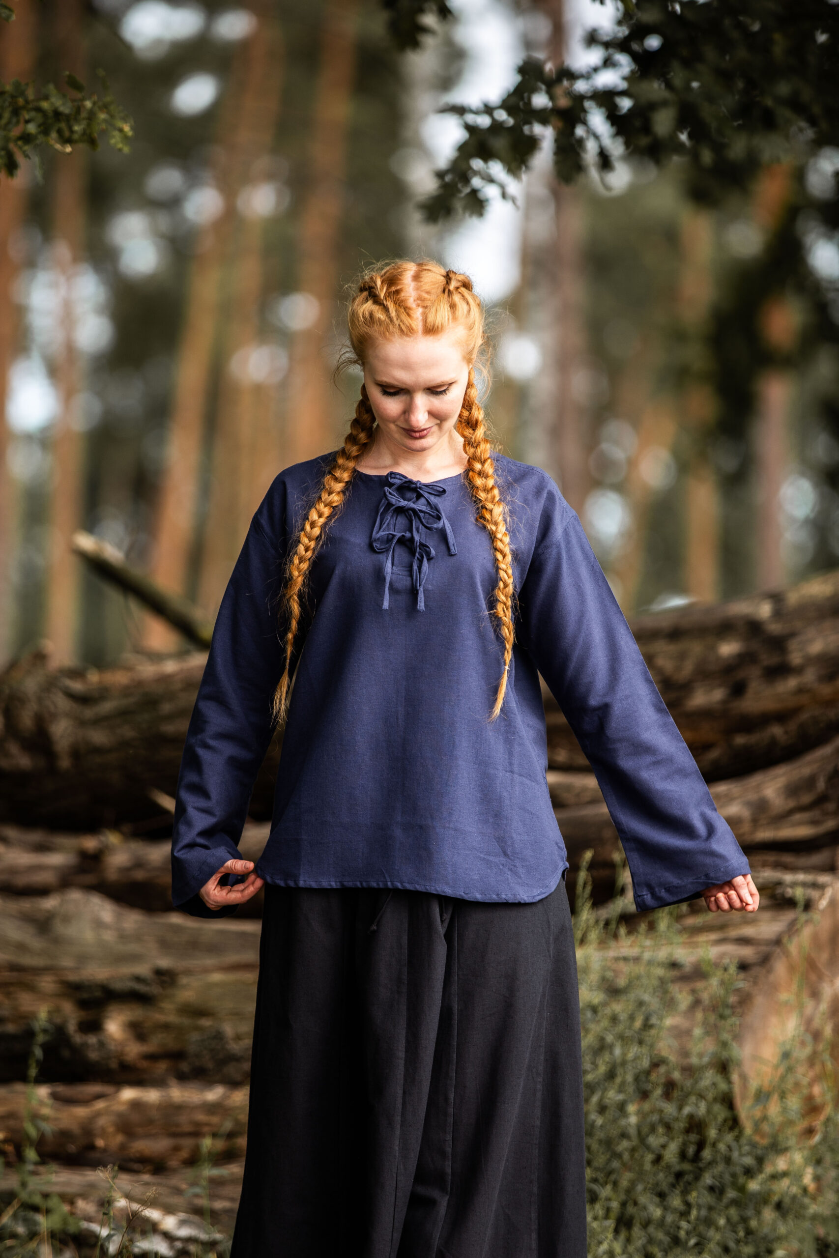 Ontdek de charme van het verleden met onze middeleeuwse blouse Tilda, een must-have voor elke middeleeuwse liefhebber. Deze prachtige blouse is zorgvuldig ontworpen met eenvoud en comfort als uitgangspunt. Met een klassieke ronde halslijn en een charmant vetersluitingdetail aan de voorkant, vangt het de essentie van middeleeuwse mode. Het losse ontwerp, de rechte mouwen en de licht gebogen zoom creëren een gracieus silhouet dat je meevoert naar een tijdperk vol mysterie en avontuur. Laat deze blouse je vergezellen op je epische avonturen, want hij biedt zowel stijl als gemak bij elke beweging.